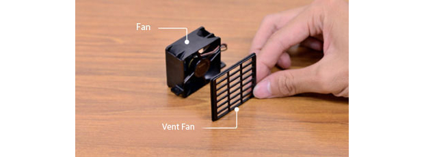 The heat sink and fan positioning.